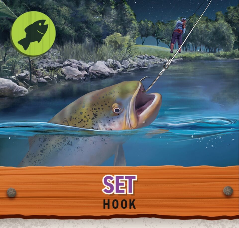 Once the fish takes the bait, it’s time to reel! Contend with the fish by discarding cards that match the Fight cards drawn for the fish.
